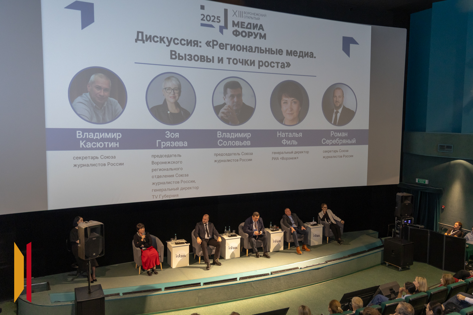 Дискуссия «Региональные медиа. Вызовы и точки роста» прошла в рамках XIII Воронежского открытого медиафорума в среду, 3 декабря. Эксперты обсудили трудности, с которыми за последние пять лет столкнулась журналистика, а также поговорили о том, что будет с печатными СМИ в дальнейшем и не поглотит ли всю медиазону искусственный интеллект. Среди участников дискуссии: председатель Союза журналистов России (СЖР) Владимир Соловьев, секретари СЖР Владимир Касютин и Роман Серебряный, а также генеральный директор медиахолдинга РИА «Воронеж» Наталья Филь и председатель Воронежского регионального отделения СЖР, директор медиахолдинга «Губерния» Зоя Грязева. Встречу посетили корреспонденты РИА «Воронеж».