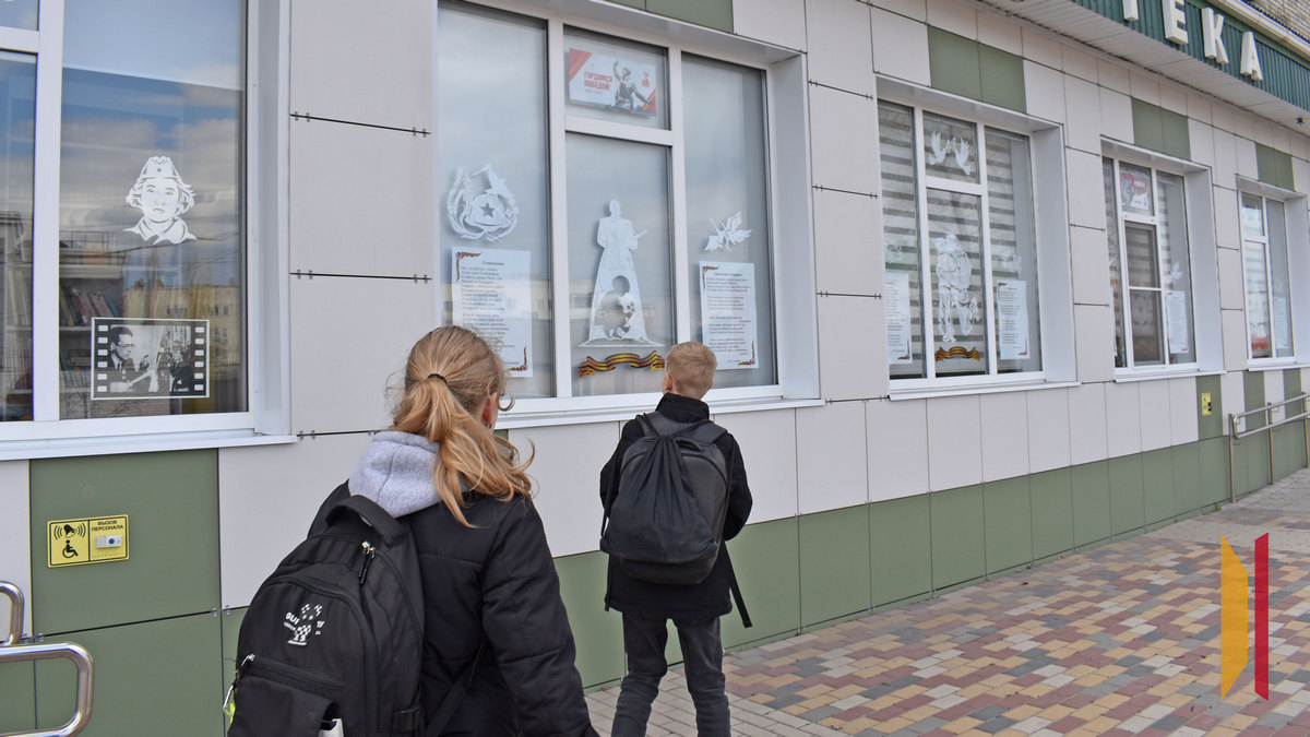 На окнах библиотеки можно прочитать стихи Михаила Просянникова, Александра Петрова, Николая Титарева, Семена Золотарева, Иды Плетенецкой, Ивана Сафонова, Владислава Лоленко и Владимира Шишлова.