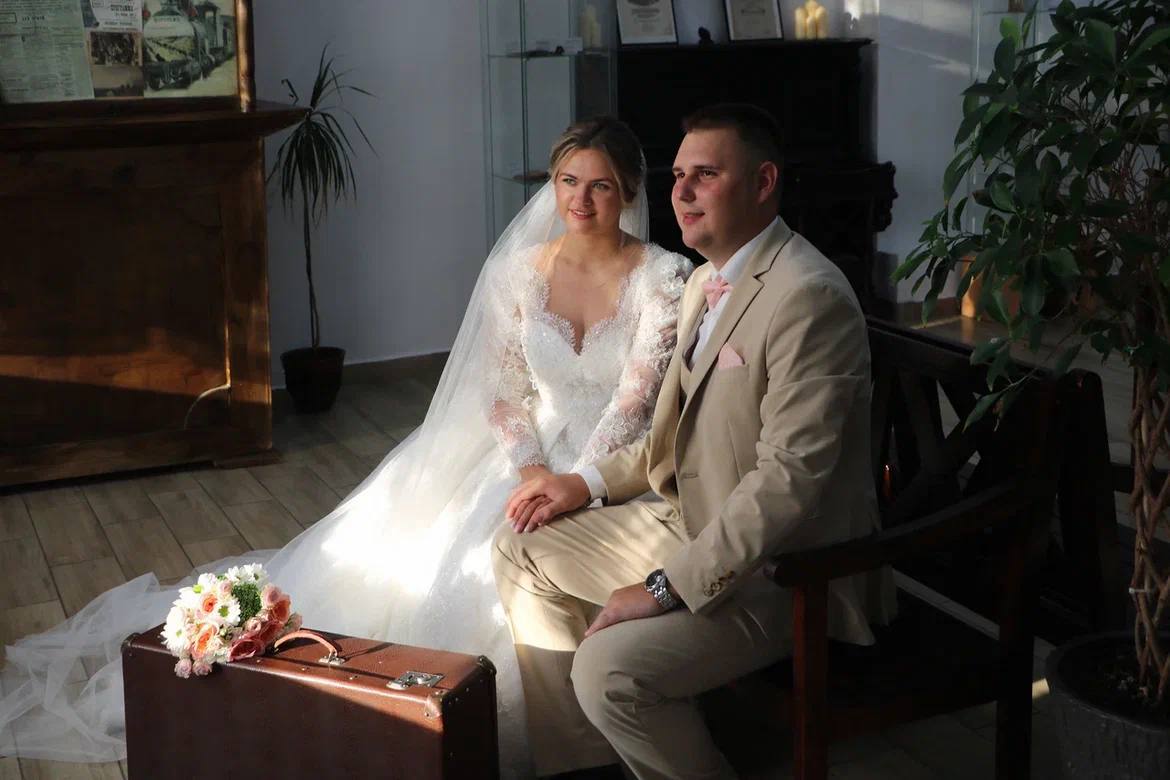 На перроне жениха и невесту ждал украшенный паровоз, машинист поздравил пару с бракосочетанием длинным гудком. На станции Графская влюбленных встретили с традиционным караваем. Также паре организовали оригинальную фотосессию в экспозиции «Зал ожидания XIX века».