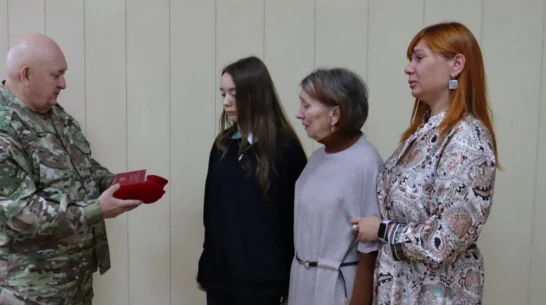 Награду вдове бойца Екатерине, матери Любови и дочери Дарье передал заместитель главы администрации Лискинского района Валерий Дегтярев в понедельник, 27 октября.