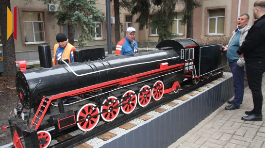 Модель длиной более 4 м и высотой 80 см изготовили умельцы сервисного локомотивного депо Поворино. Паровоз оборудовали подсветкой. При этом светится и кабина машиниста, и ходовой прожектор, и габаритные огни локомотива. Тендер паровоза – вагон, предназначенный для перевозки запаса топлива и воды, – наполнили донбасским углем.