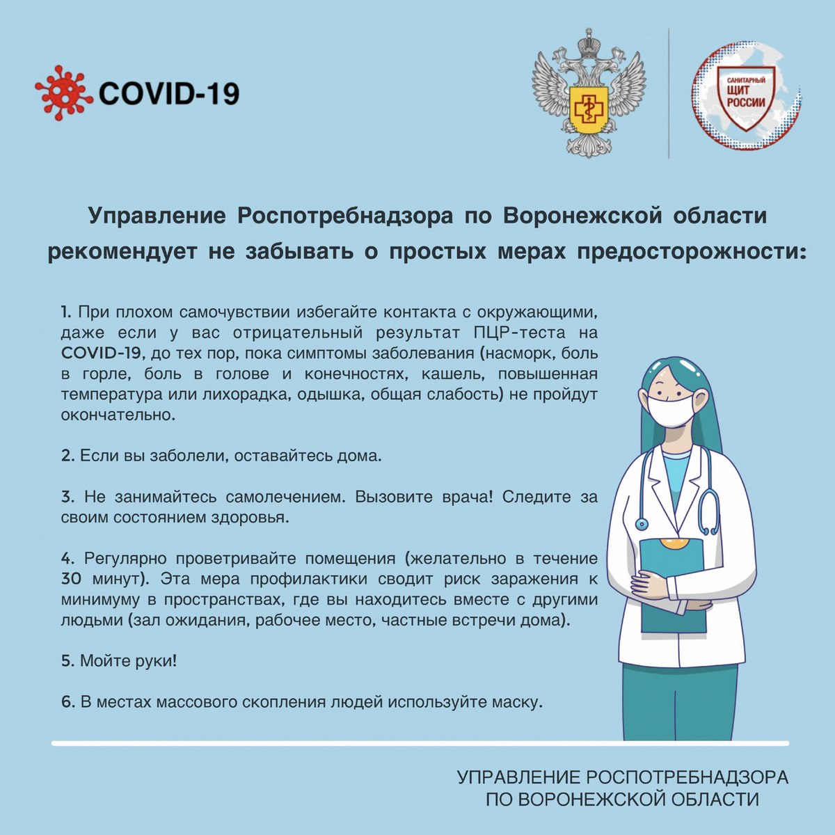 – Управление Роспотребнадзора по Воронежской области рекомендует не забывать о простых мерах предосторожности. Эти же меры помогут вам, вашим друзьям и близким снизить риски заражения другими респираторными заболеваниями, – подчеркнули санитарные врачи.