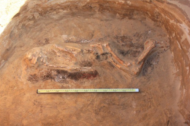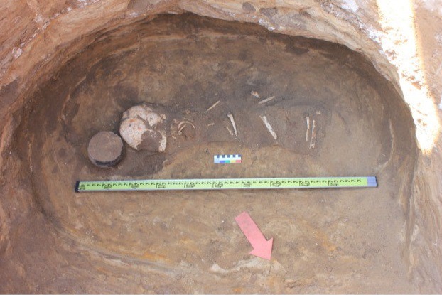 В первом захоронении нашли человеческий костяк, который был сильно фрагментирован – у него отсутствовали некоторые позвонки, ребра, а также мелкие кости рук и ног. Погребенный лежал в скорченной позе на правом боку.